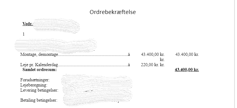 - Aconto fakturering for montage/demontage
